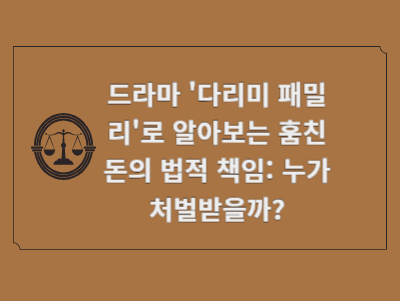 드라마 “다리미 패미리” 에서 누군가가 돈을 훔친 후, 그 돈을 다른 사람이 훔친다면, 법적으로 어떻게 처벌될까요? 이런 상황에서는 법적 책임이 어떻게 적용되는지 궁금할 수 있습니다. 오늘은 이 상황에 대해 형법적 관점에서 법의 적용과 처벌을 구체적으로 살펴보겠습니다.